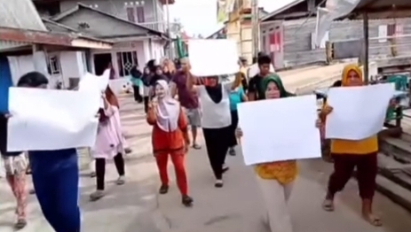 Aksi ini berlangsung di depan kantor desa setelah sebelumnya massa, yang mayoritas terdiri dari emak-emak, berkeliling desa sambil berorasi.
