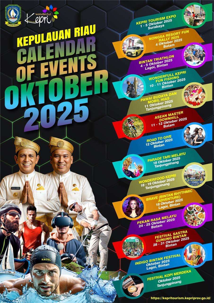 Tanjung Pinang | Dinas Pariwisata Provinsi Kepulauan Riau meluncurkan 14 even pariwisata menarik sepanjang Oktober 2025. Peluncuran dilakukan pada Selasa (30/9/2025) untuk mempromosikan kegiatan kebudayaan, olahraga, kuliner, serta wisata alam dan amal. Even-even ini digelar di berbagai kota dan kabupaten di Kepri, terbuka bagi wisatawan domestik maupun mancanegara. Tujuannya untuk meningkatkan kunjungan wisata sekaligus menampilkan kekayaan budaya dan alam Kepri.