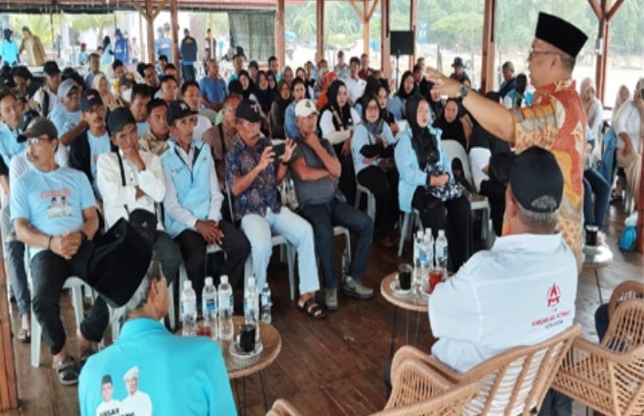 Belakang Padang | Kampanye perdana Calon Wakil Gubernur Kepri, Nyanyang Haris Pratamura memilih untuk melakukan sosialisasi dengan ratusan tim relawan di Kecamatan Belakangpadang, Sabtu (28/9/2024).