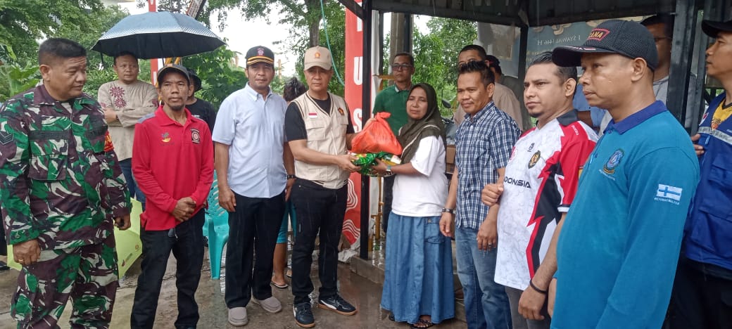 Disela melakukan peninjauan, H. Aweng Kurniawan anggota dewan dari fraksi Gerindra juga menyalurkan bantuan untuk meringankan beban korban berupa paket sembako kepada warga terdampak bencana angin puting beliung.