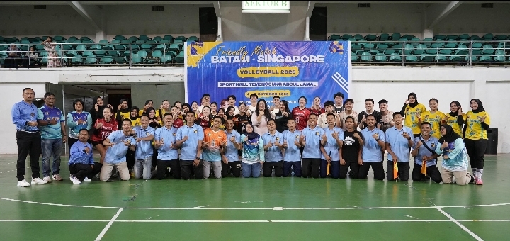 Batam | Pertandingan persahabatan bola voli putera dan puteri antara BP Batam, VTeam, dan UN-Collective Singapore resmi dibuka pada Sabtu (4/10/2025) di Sporthall Temenggung Abdul Jamal.