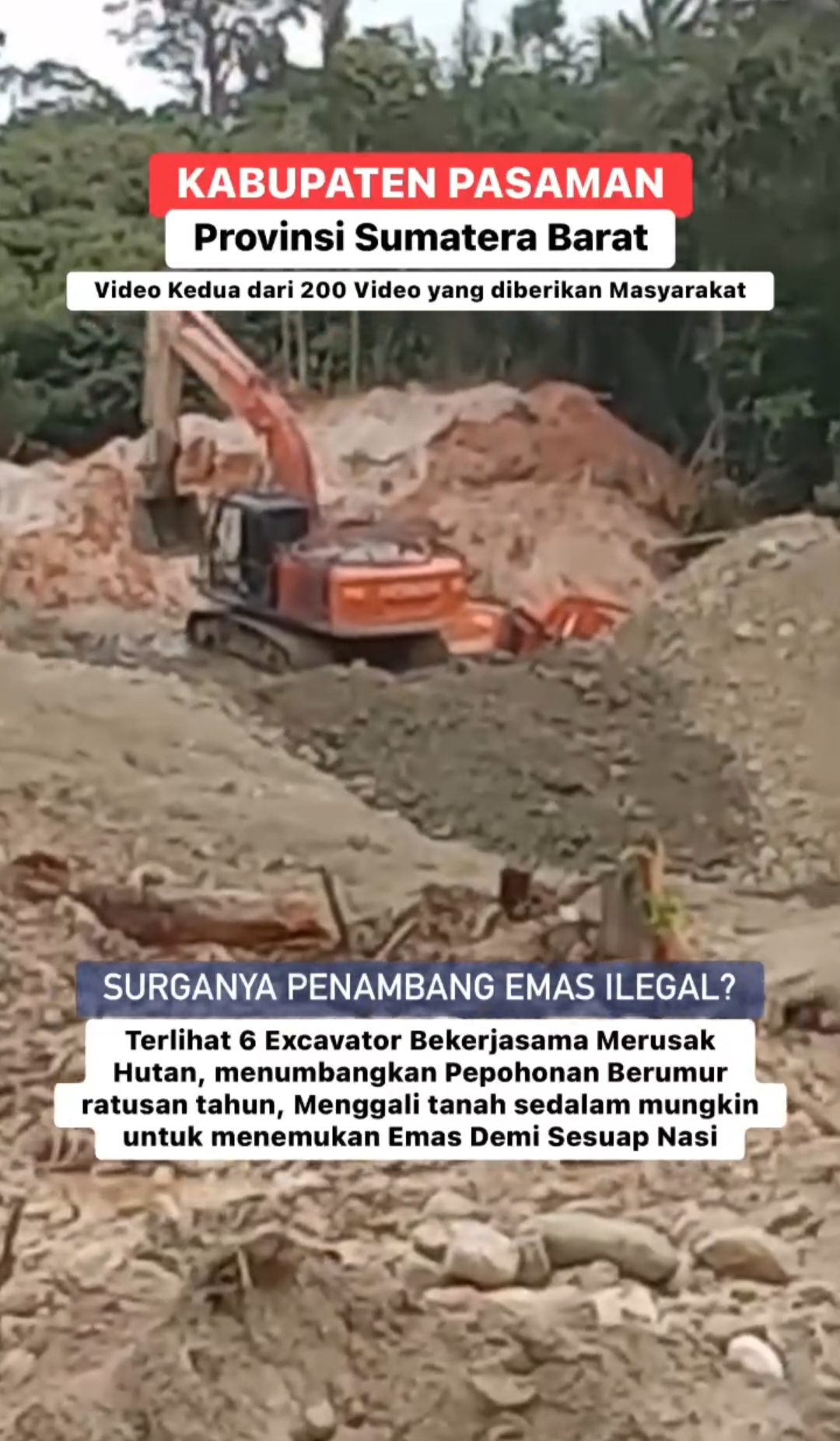 Video viral yang diposting di meda sosial Facebook oleh pemilik akun @Rudi Apriasi membuktikan lemahnya penegakan hukum terkait Aktivitas Tambang Emas illegal di Kabupaten Pasaman. Bukan ‘main’ puluhan unit Alat berat Excavator dikabarkan beroperasi secara ‘membabibuta’ di sejumlah titik di wilayah Pasaman, terutama Kecamatan Dua Koto.
