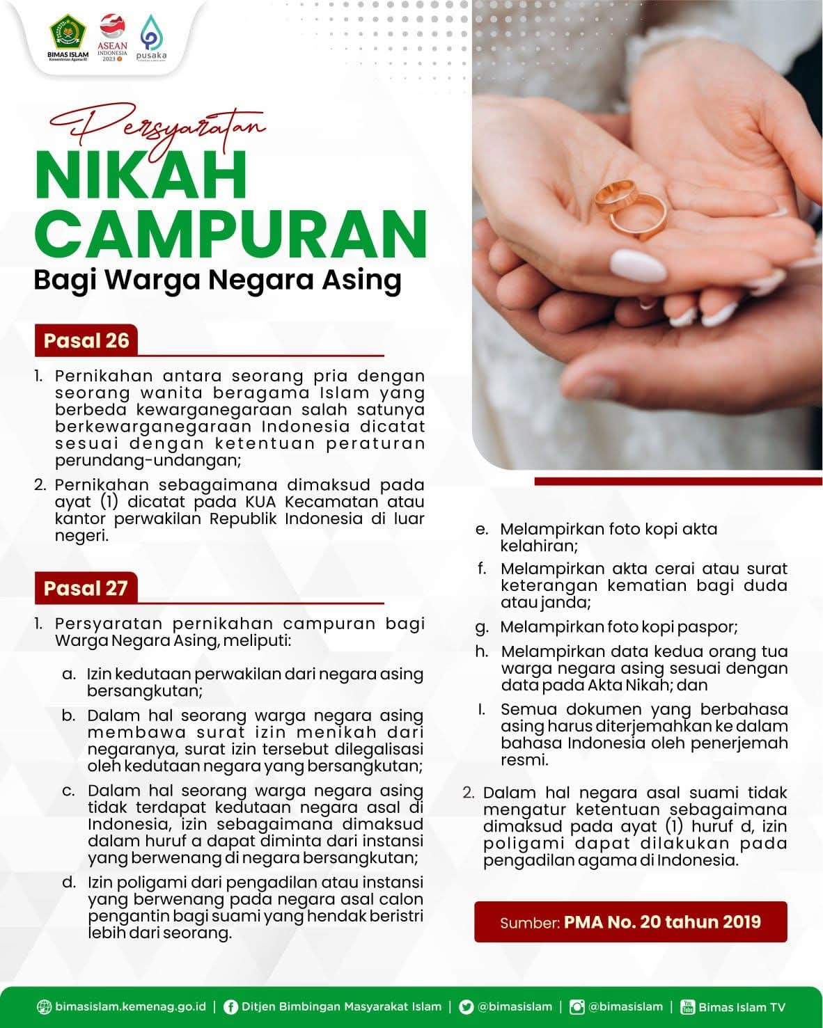 Pernikahan campuran (WNI-WNA) juga diatur dalam PMA No. 20 Tahun 2019.