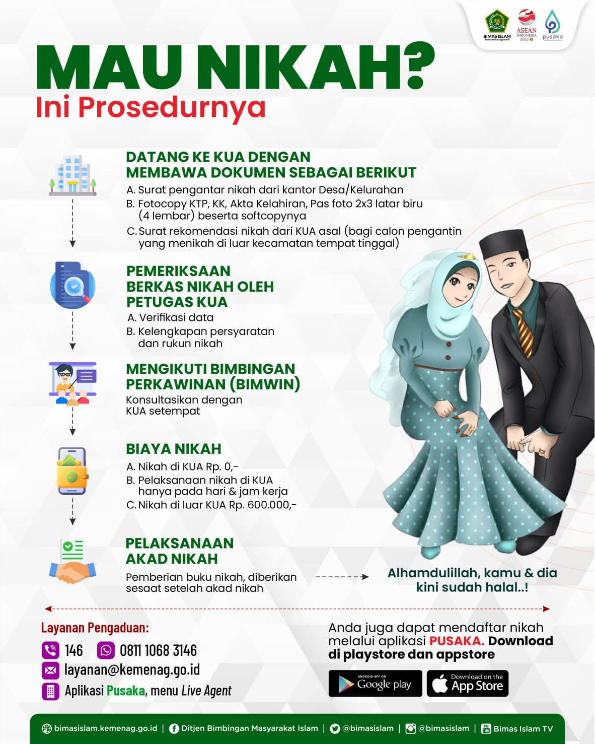 Melansir kanal akun resmi media sosial Kantor KUA Kecamatan Belakang Padang, Selasa (26/8/2025) Kementerian Agama RI melalui Ditjen Bimas Islam telah mengatur tata cara pendaftaran nikah dalam Peraturan Menteri Agama (PMA) No. 20 Tahun 2019.