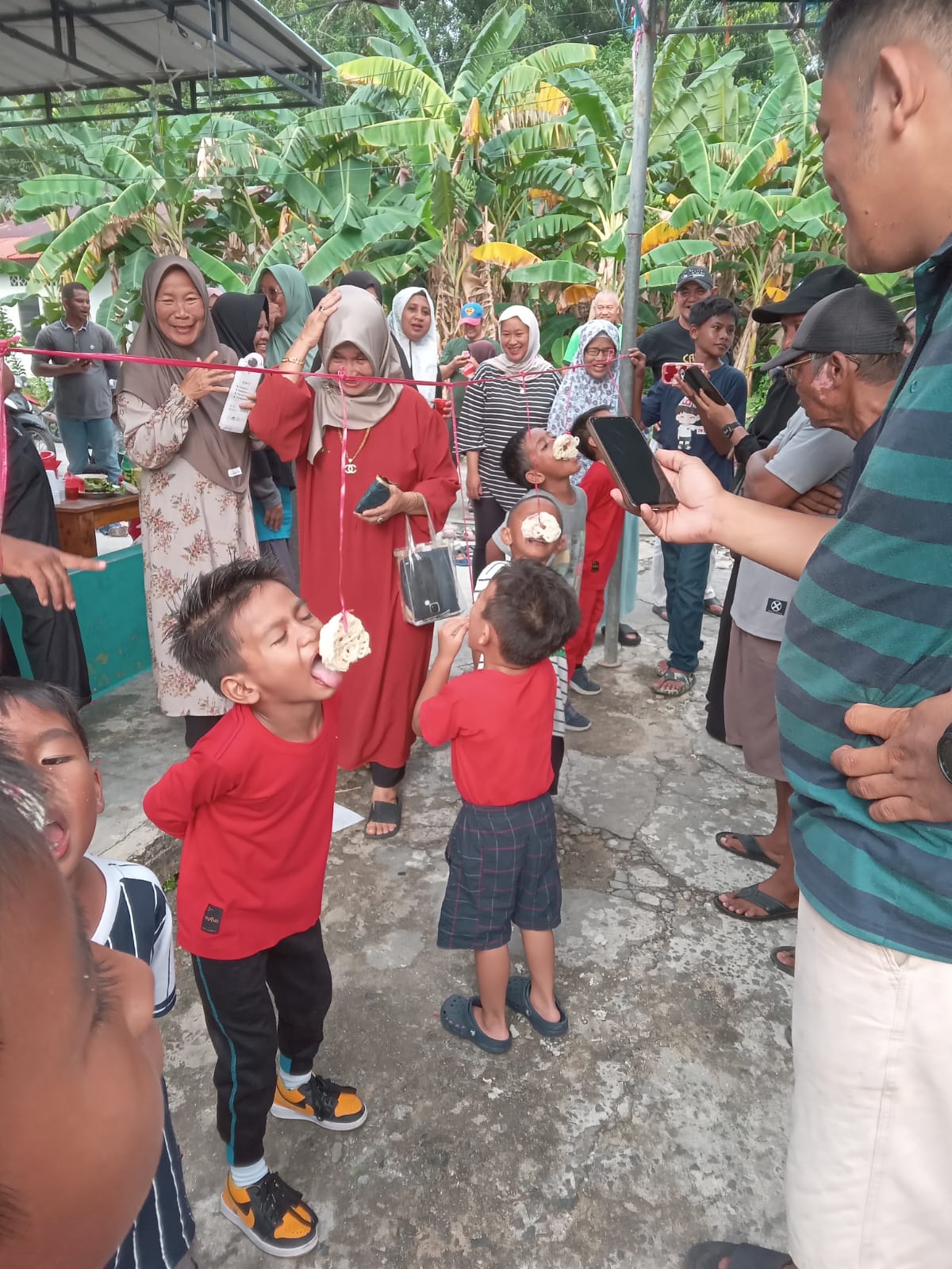 Lanjut Dika, Ada beberapa kegiatan lomba yang kita laksanakan, mulai dari lomba makan kerupuk, bawa kelereng dengan menggunakan sendok, kupas telor, estafet air dan tepung, estafet balap karung, masukan paku dalam botol, masukan benang dalam jarum, estafet balon, lomba memakai jilbab berpasangan untuk lansia, jalan santai dan lain lain.