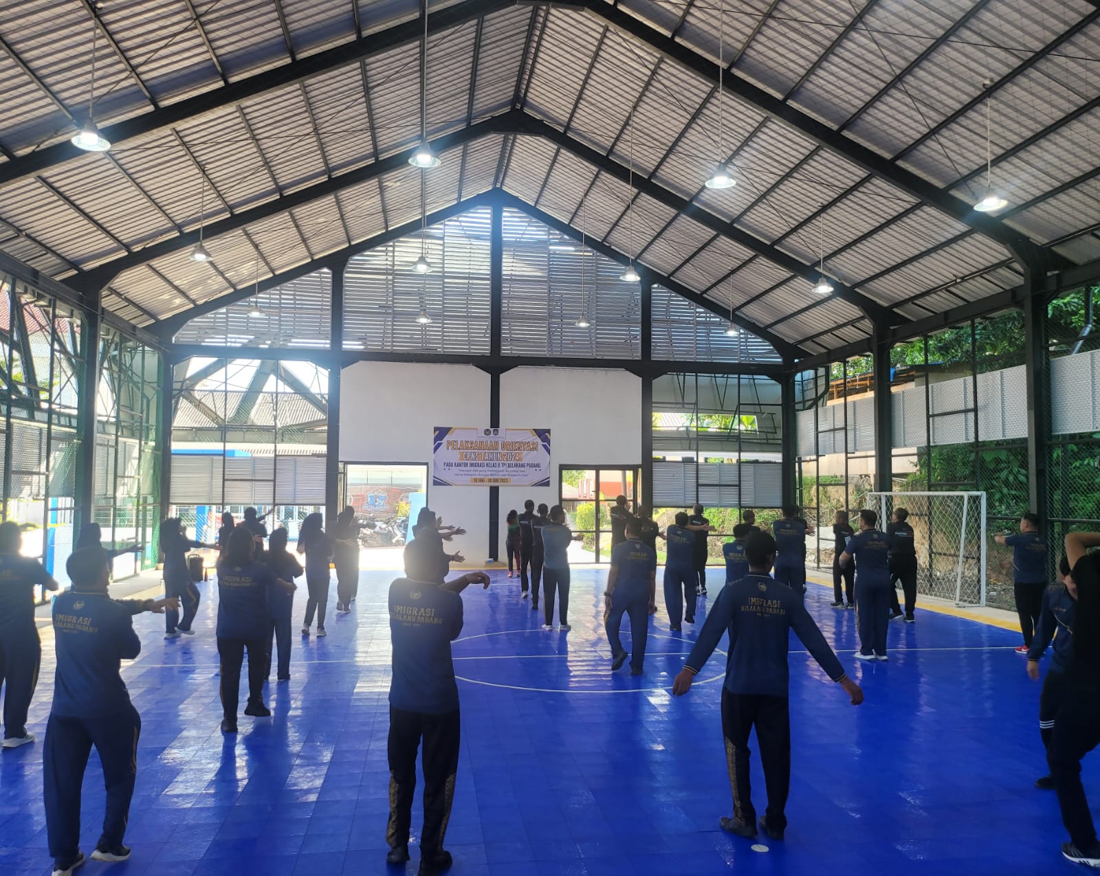 Belakang Padang | Guna meningkatkan kesehatan serta imunitas tubuh, Pegawai Kantor Imigrasi Kelas II TPI Belakang Padang menggelar senam pagi bersama di Gedung Olahraga Kantor Imigrasi Belakang Padang, Jumat (13/06/2025) pagi.