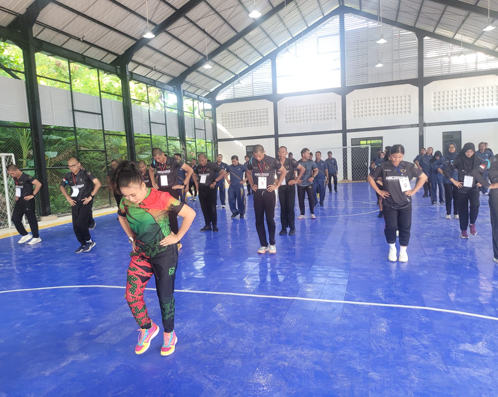 Belakang Padang | Guna meningkatkan kesehatan serta imunitas tubuh, Pegawai Kantor Imigrasi Kelas II TPI Belakang Padang menggelar senam pagi bersama di Gedung Olahraga Kantor Imigrasi Belakang Padang, Jumat (13/06/2025) pagi.
