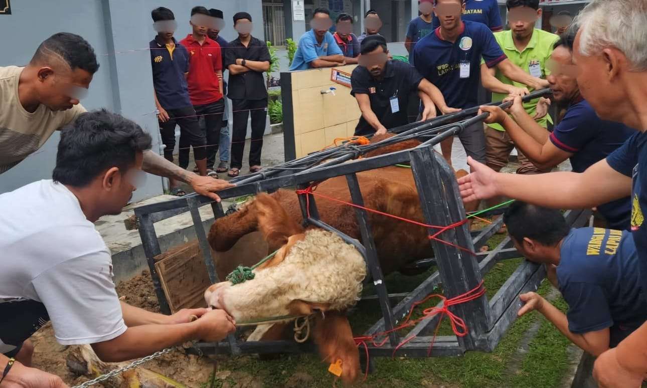 Batam | Suasana Iduladha 1446 Hijriah terasa khidmat di Lapas Kelas IIA Batam. Sebanyak dua ekor sapi dan sembilan ekor kambing disembelih sebagai hewan kurban pada Jumat (6/6/2025), dan dagingnya dibagikan kepada para warga binaan serta petugas.