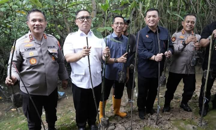 Batam | Wali Kota Batam, Amsakar Achmad, turut serta dalam kegiatan penanaman 1.000 pohon mangrove di kawasan pesisir Pelabuhan Kelurahan Tanjung Piayu, Kecamatan Sei Beduk, Kamis (1/5/2025).