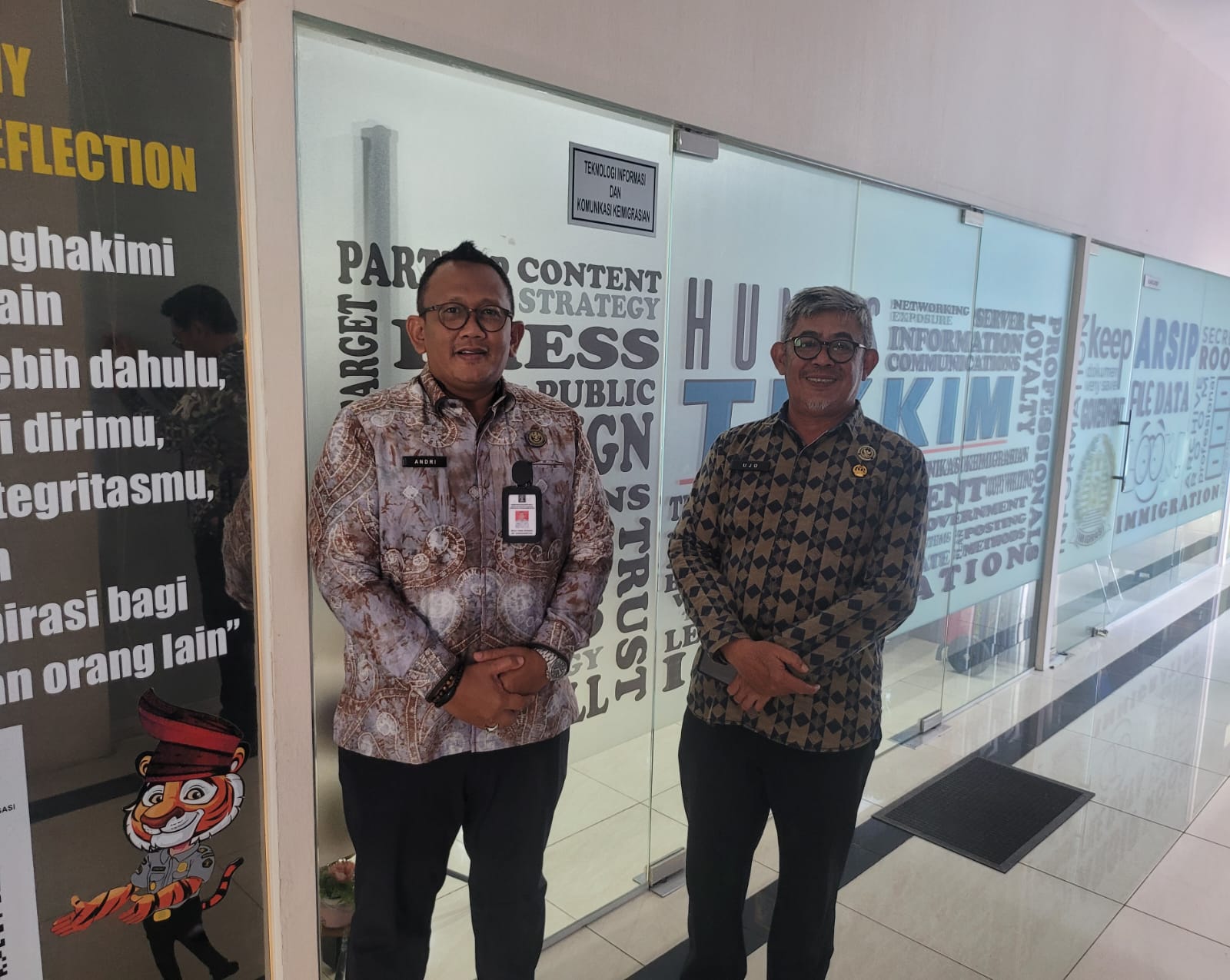 Kedatangan Ujo Sujoto, SH., M.Si di Kantor Imigrasi Belakang Padang langsung disambut Kepala Kantor Imigrasi Belakang Padang, Moch Andri Budiman S.Sos., M.Si bersama jajaran.