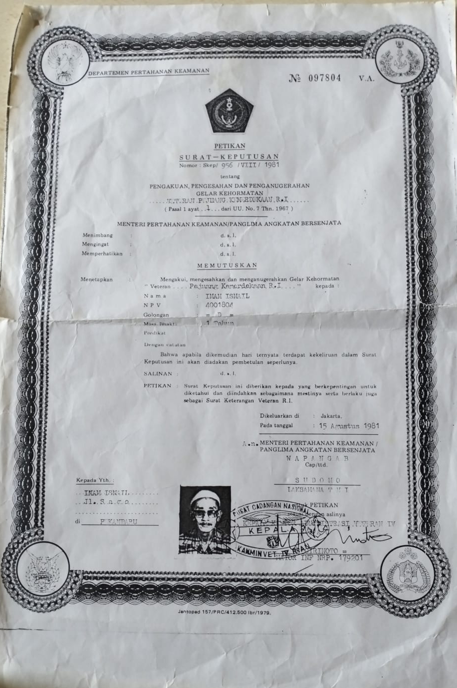 Diakui Negara sebagai Pejuang Kemerdekaan