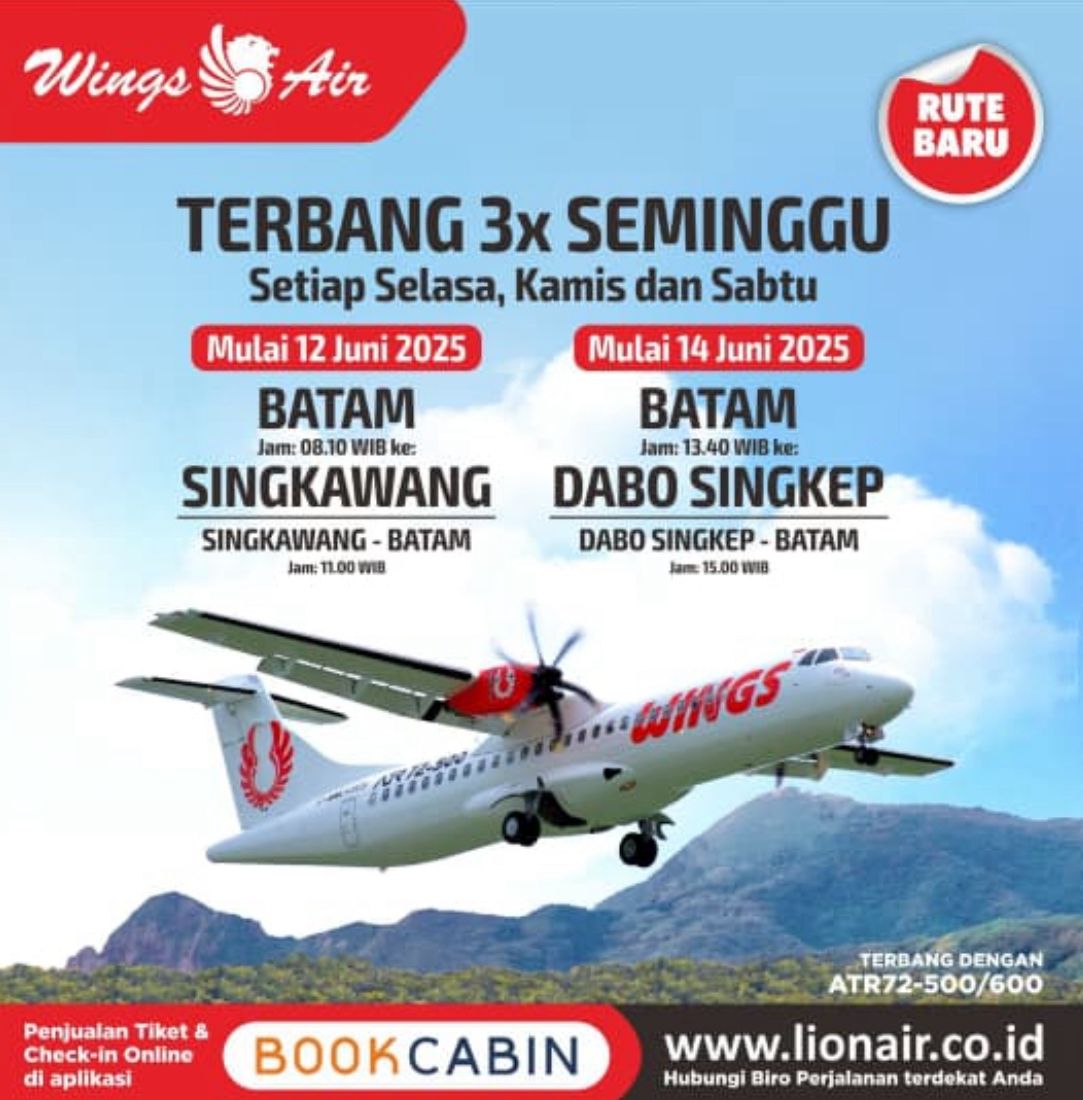 LINGGA – Setelah lama dinantikan, akhirnya Wings Air membuka kembali rute penerbangan Batam – Dabo Singkep, Kabupaten Lingga, Kepulauan Riau. Kabar baik ini langsung disambut antusias oleh masyarakat setempat yang kini dapat menikmati kemudahan akses udara ke wilayah tersebut.
